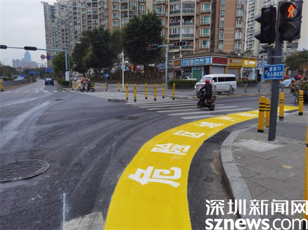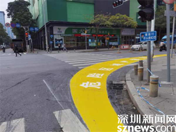 目前,羅湖轄區(qū)16個(gè)右轉(zhuǎn)彎危險(xiǎn)區(qū)警示帶試點(diǎn)設(shè)置工作已初步完成,警示帶的視覺(jué)效果清晰醒目,既能夠直觀地警示行人及非機(jī)動(dòng)車(chē)禁止進(jìn)入機(jī)動(dòng)車(chē)道等待紅綠燈,又能提醒右轉(zhuǎn)彎車(chē)輛在保證安全的前提下“轉(zhuǎn)大彎”,從而起到提升行人、非機(jī)動(dòng)車(chē)、大型車(chē)輛駕駛員危險(xiǎn)意識(shí)的作用。