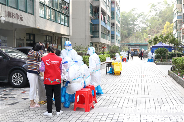 2月28日早上,蓮塘街道各社區(qū)集結(jié)工作人員支援長(zhǎng)嶺社區(qū),每個(gè)樓棟由長(zhǎng)嶺社區(qū)黨委委員“一對(duì)一”掛點(diǎn),幫助居民采購(gòu)配送物資,協(xié)助核酸檢測(cè)排查、流調(diào)排查、生活垃圾清理等,全力保障小區(qū)住戶日常生活需求。據(jù)蓮塘街道工作人員介紹,為保證核酸采樣快速、高效,長(zhǎng)嶺社區(qū)每棟樓樓下都安排了一個(gè)核酸采樣點(diǎn),助力核酸檢測(cè)采樣工作有序開展。