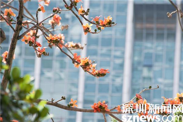 赤焰灼灼的木棉花開了,染紅了轄區(qū)半邊天際,與深圳藍相映成趣。一朵朵嫣紅的花兒垂?jié)M枝頭,沐浴著暖春的陽光綻放,也點綴著花下賞花的居民們。