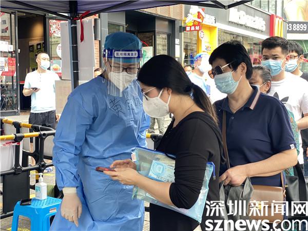 在東門(mén)茂業(yè)核酸檢測(cè)點(diǎn),雖然附近的商場(chǎng)已暫停營(yíng)業(yè),往日的熱鬧回歸了平靜,但在旁邊的核酸檢測(cè)點(diǎn),志愿者們一遍又一遍不厭其煩地指引大家有序做好核酸檢測(cè)。