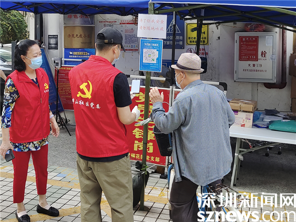 3月21日上午,在聚福花園黨員先鋒崗,老黨員張瑩和年輕黨員藍(lán)國(guó)亮在幫助居民掃場(chǎng)所碼。像這樣的新老黨員齊上陣,在畔山社區(qū)各黨支部還有很多,近日,轄區(qū)各核酸采樣點(diǎn)、小區(qū)出入口和城中村圍合卡點(diǎn),處處可見(jiàn)鮮紅的黨旗和忙碌的紅馬甲,他們用實(shí)際行動(dòng)影響并帶動(dòng)更多的熱心市民群眾參與社區(qū)服務(wù),為一線防疫工作“添磚加瓦”。