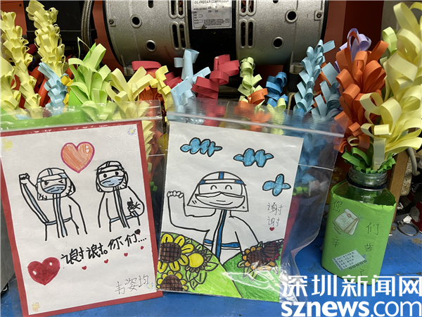 羅湖區(qū)蓮塘小學(xué)某班班長(zhǎng)見(jiàn)醫(yī)護(hù)人員和義工志愿者日夜操勞,不辭辛苦,號(hào)召全班同學(xué)為防疫人員“送溫暖”。有的同學(xué)親手制作五顏六色的精美手折紙花,還有些同學(xué)別出心裁的繪制了“感謝大白”賀卡,禮物制作完成后,全班同學(xué)分頭行動(dòng),將手折紙花送到各核酸采樣點(diǎn)醫(yī)護(hù)人員和志愿者手中?!拔覀儙筒簧鲜裁?,做些力所能及的事情,為大哥哥大姐姐送去感動(dòng)和力量,也是為抗疫做貢獻(xiàn)?!眮?lái)自羅湖中醫(yī)院,在蓮塘村七巷小廣場(chǎng)支援的醫(yī)護(hù)人員們收到同學(xué)們送來(lái)的“禮物”非常開(kāi)心,紛紛表示,雖然每天工作很辛苦,但能得到群眾尤其是孩子們的肯定十分幸福,禮物雖小,卻無(wú)比溫暖和感動(dòng)。