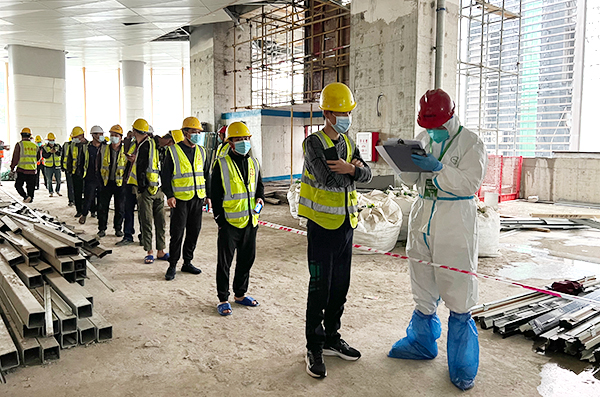 做好疫情防控,企業(yè)是重要陣地。丁振遠表示,把防疫的政策送到工地上,也是為了督促工地建設負責人管理好自己的團隊,在安全生產(chǎn)的過程中加強疫情防控,做到每一個環(huán)節(jié)落實到位,確保工地建設防疫生產(chǎn)“兩手抓兩不誤”。同時,他也叮囑,工地要嚴格落實防控措施,要做好人員管理和辦公場所的消殺工作,要繼續(xù)倡導全體員工做好自我防護。