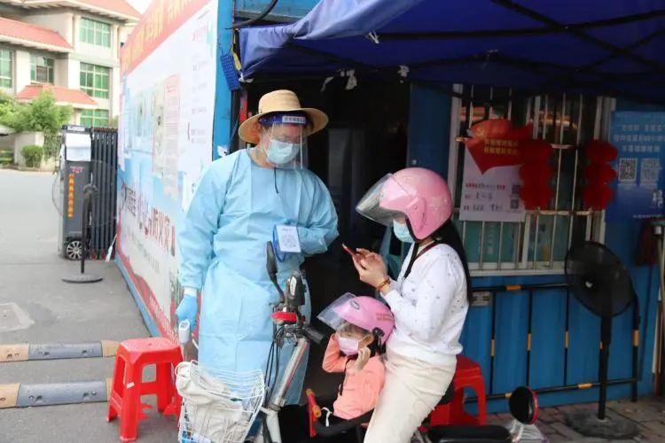 當天下午,坪山區(qū)深港澳青年創(chuàng)新創(chuàng)業(yè)基地義工服務(wù)隊繼續(xù)來到秀新社區(qū)核酸檢測點參加志愿服務(wù)。隨著氣溫升溫,穿著防護服也越來越容易熱,面屏上都是水汽,但是大家依然堅守在各自的崗位上。