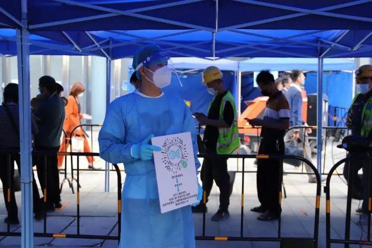 “之前一直在居住的小區(qū)做義工,在核酸檢測點做義工還是第一次,能為居民提供力所能及的服務(wù),我覺得非常有意義?!痹谄荷絼?chuàng)新廣場核酸檢測點,根之然生物科技有限公司創(chuàng)始人、香港青年趙曼弛一絲不茍做好掃碼、測溫工作。