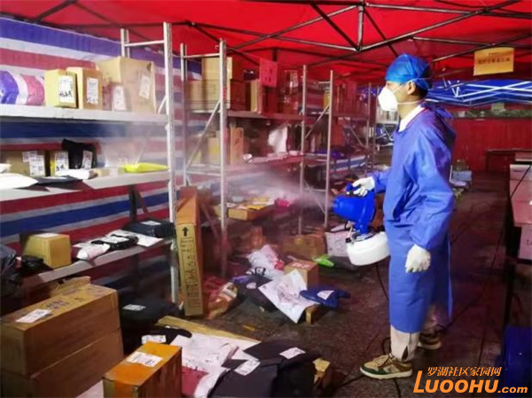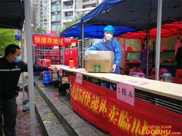 隨著快遞和線上訂菜數(shù)量增多,為了避免居民取快遞聚集以及與快遞員頻繁接觸,寶龍管理嘉園管理處決定在小區(qū)正門設立快遞外賣臨時存放點,根據(jù)樓棟、物品類型等進行分類,實行“無接觸”配送。存放點麻雀雖小,但五臟俱全:分別設有快遞消毒分揀區(qū)、郵寄快遞消毒交接區(qū)、消毒分類中轉(zhuǎn)區(qū)、快遞存放區(qū)、外賣(生鮮蔬菜快餐)存放區(qū)。