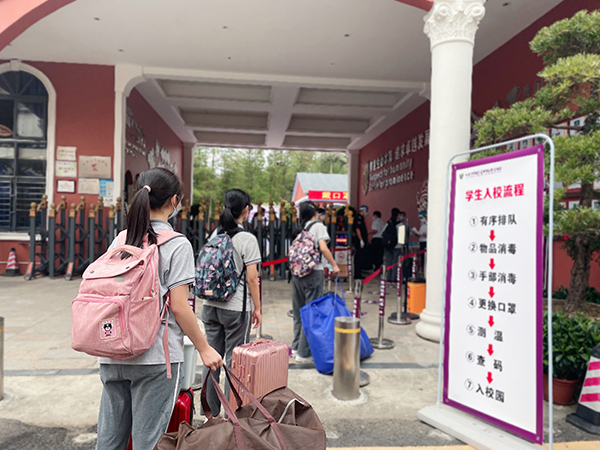 讀特客戶端·深圳新聞網(wǎng)2022年4月11日訊(記者 吳艷 通訊員 魏次開)今日上午7點(diǎn)左右,羅湖區(qū)諾思外語實驗學(xué)校大門外,帶著濃濃返校期盼的學(xué)生和家長們早已提前等候在學(xué)校門口,左手書包右手行李,自覺列隊等待核驗,開啟了初三學(xué)生春季學(xué)期返校的序幕。