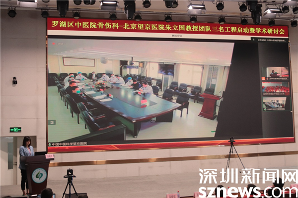 本次啟動(dòng)儀式以“線上+線下”的方式進(jìn)行。望京醫(yī)院院長(zhǎng)李浩以及朱立國(guó)教授團(tuán)隊(duì)在北京通過視頻連線參與啟動(dòng)儀式,羅湖醫(yī)院集團(tuán)院長(zhǎng)孫喜琢、羅湖區(qū)中醫(yī)院黨政領(lǐng)導(dǎo)班子及骨傷科骨干成員共同參會(huì)。