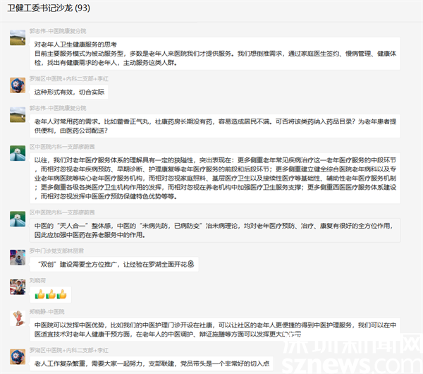 此次沙龍活動在一個小時內,收到各書記參與討論的信息超過200條,大家參與情緒熱烈。下一步,羅湖區(qū)委衛(wèi)生健康工委將把此次“書記沙龍”提出的好建議作為下一步老年健康服務工作的改進方向,力促沙龍形成的經驗、思路切實轉化為實際舉措和工作亮點,在黨建業(yè)務融合、健康共建共治、探索創(chuàng)新實踐上持續(xù)發(fā)力,不斷提升群眾的滿意度和獲得感,真正成為群眾的“暖心人”“貼心人”。
