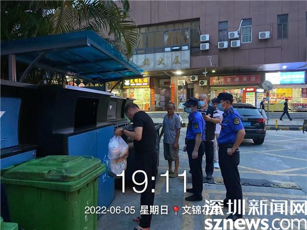 當(dāng)天晚上19點(diǎn)-21點(diǎn),小區(qū)黨員和義工在文錦花園、海富花園垃圾分類投放點(diǎn)與小區(qū)垃圾分類督導(dǎo)員共同開展垃圾分類夜間督導(dǎo)活動,引導(dǎo)居民分類投放垃圾,并為居民詳細(xì)講解和宣傳廚余垃圾分類的相關(guān)知識。同時聯(lián)同街道執(zhí)法隊(duì)開展“夜間執(zhí)法”,對所檢查的小區(qū)廚余垃圾分出量較低的物業(yè)小區(qū)開展執(zhí)法檢查,一方面指導(dǎo)垃圾分類督導(dǎo)員切實(shí)履職,另一方面對于亂投放垃圾的行為,對其責(zé)令改正。