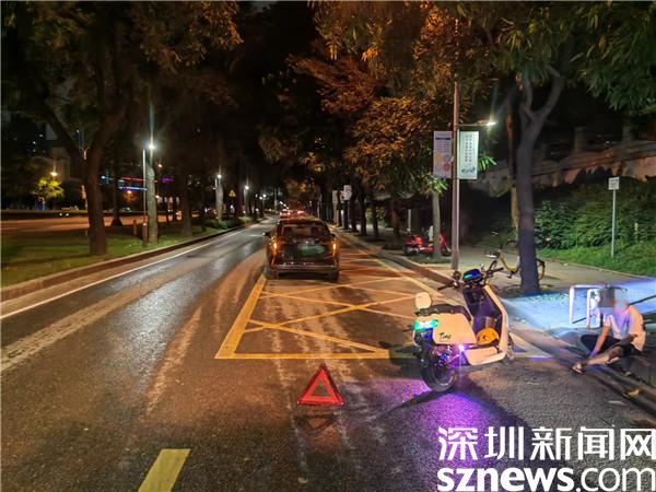 2022年6月18日凌晨,羅湖交警大隊筍崗中隊民警接到群眾報警稱,泥崗東路輔道往紅崗花園路段發(fā)生一起道路交通事故,事故中有人員受傷。獲悉該情況后,執(zhí)勤民警立即趕往現(xiàn)場處理。