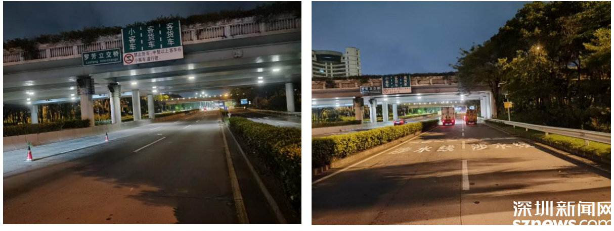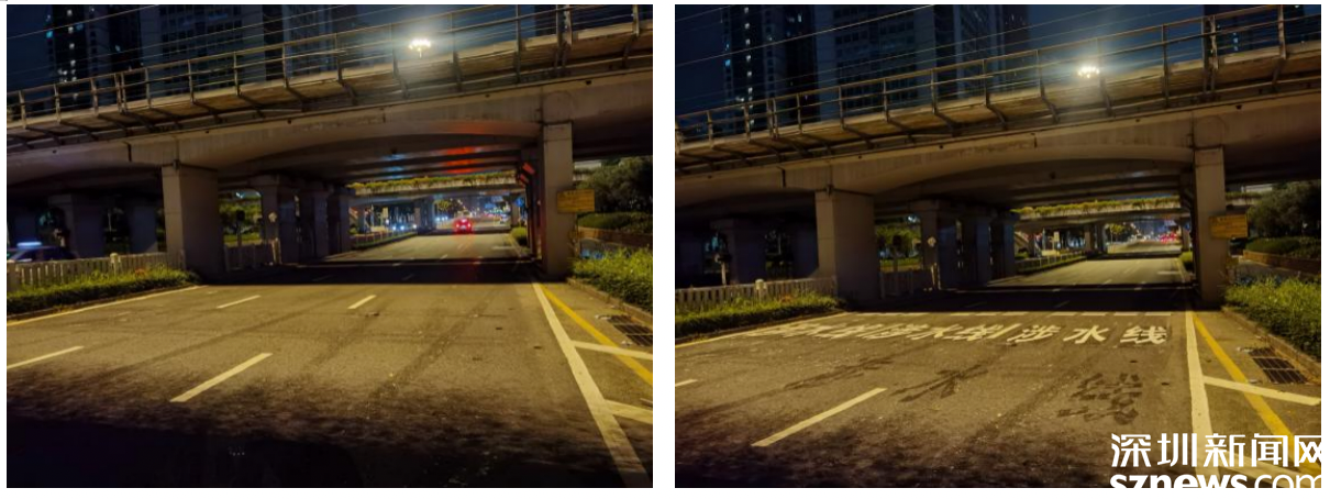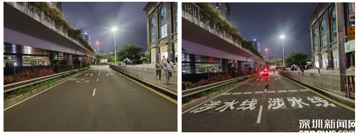 深南東路東行建設(shè)橋下涉水線施工前后對比