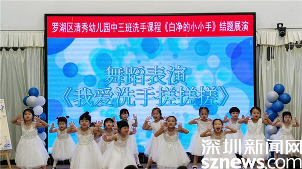 讀特客戶端·深圳新聞網(wǎng)2022年7月6日訊(記者 劉嘉敏 通訊員 曠翠萍)7月5日,深圳市羅湖區(qū)清秀幼兒園舉辦了一場特別的手衛(wèi)生主題課程結(jié)業(yè)展演。該課程由羅湖區(qū)疾病預(yù)防控制中心與清秀幼兒園共同開發(fā),在為期21天的主題課程中,通過15節(jié)生動有趣的繪本閱讀、實驗、游戲、觀察、手工、繪畫等多種課程形式,讓孩子們逐漸加深對手衛(wèi)生相關(guān)知識的理解,掌握洗手技能,養(yǎng)成洗手習(xí)慣。