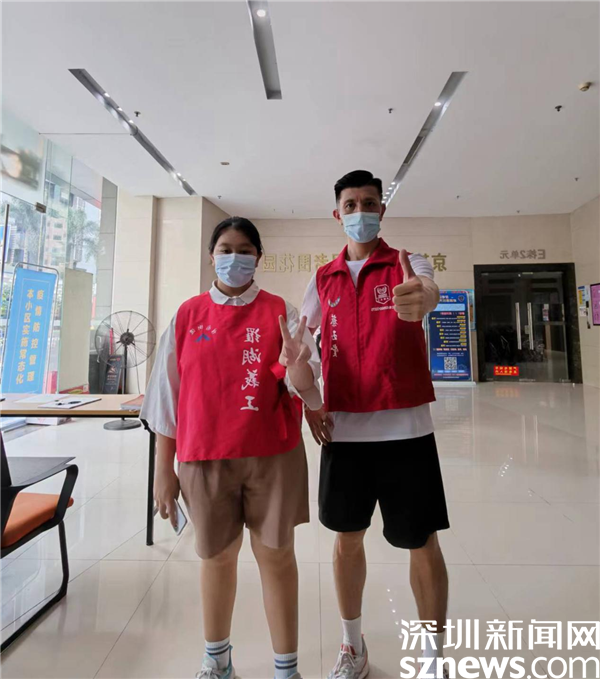 在老圍社區(qū)防疫一線,除了表兄弟,還有一對親姐妹,她們是陳嘉琪和陳嘉盈。兩姐妹相差2歲,一個上高中一個上初中。她們曾經(jīng)一起參加過老圍社區(qū)的文明城市創(chuàng)建活動,助力深圳創(chuàng)建文明城市,還利用周末時間清潔社區(qū)漂流書屋、整理書屋里的書籍?,F(xiàn)在,姐妹倆又雙雙在小區(qū)卡口執(zhí)勤,為社區(qū)防疫貢獻(xiàn)力量。