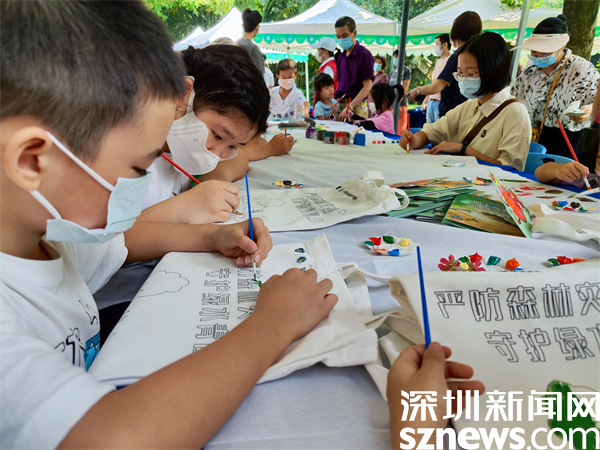 現(xiàn)場互動展區(qū)設(shè)有森林百米畫卷、環(huán)保袋 DIY,通過寓教于樂的方式,培養(yǎng)市民“人與自然”和諧發(fā)展的深層理念。小朋友們可以充分發(fā)揮天馬行空的想象力,在畫布和環(huán)保袋上涂鴉手繪,制作自己的“專屬定制”,完成互動還可以獲得精美的紀念品一份。