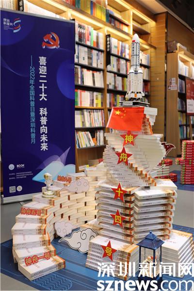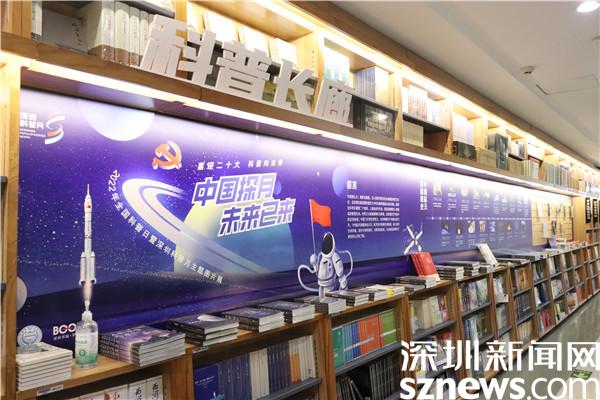 在科普月期間,羅湖書(shū)城在一樓“長(zhǎng)盒子”空間,特別打造了“科創(chuàng)科普 兩翼齊飛”主題教育展。展覽圍繞“中國(guó)這十年科技創(chuàng)新交出亮眼成績(jī)單”“紀(jì)念科普法頒布20周年”兩大重要節(jié)點(diǎn),策劃了“科技創(chuàng)新”“科普法治”“互動(dòng)學(xué)習(xí)”三大內(nèi)容板塊,集中展示中國(guó)科技發(fā)展報(bào)告、《中華人民共和國(guó)科學(xué)技術(shù)普及法》《深圳經(jīng)濟(jì)特區(qū)科學(xué)技術(shù)普及條例》等內(nèi)容,圖文并茂地講述了中國(guó)科技發(fā)展成果和中國(guó)科普工作成果。