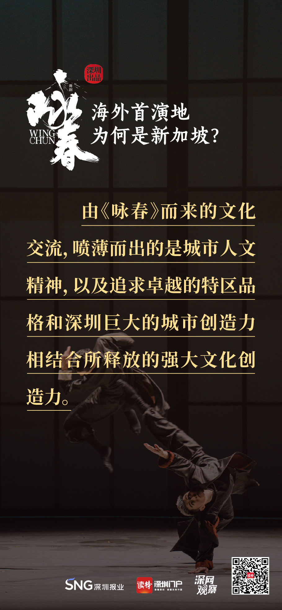 “新加坡與中國深圳血脈相連、文化相親,相信這一次的《詠春》能喚醒更多華人的文化基因!”深圳出品的原創(chuàng)舞劇《詠春》,從今年3月開啟全國首輪巡演以來,已經走遍20多個城市,巡演很快達100場,場場火爆,一票難求,成為國內歌舞劇市場的現象級佳作。據媒體報道,9月27日-30日,《詠春》受邀到新加坡濱海藝術中心連演4場,開啟海外演出。9月16日,新加坡《聯(lián)合早報》發(fā)表長文《中國舞劇<詠春>貫穿現代與傳統(tǒng)》稱:“這部舞劇不僅火遍神州,自從要在新加坡公演的消息傳出后,也成為獅城華人圈的熱門話題”。