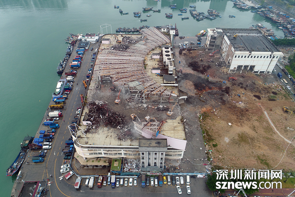 圖為4月16日漁人碼頭拆除現(xiàn)場,對周邊漁船停泊和魚鋪經營并未造成影響