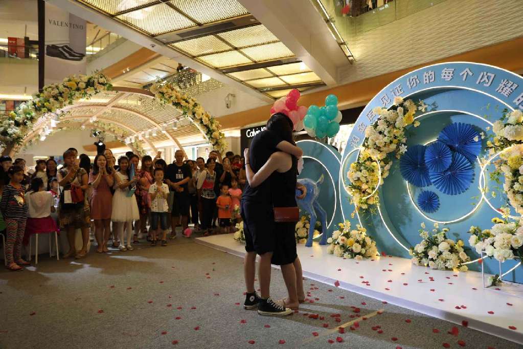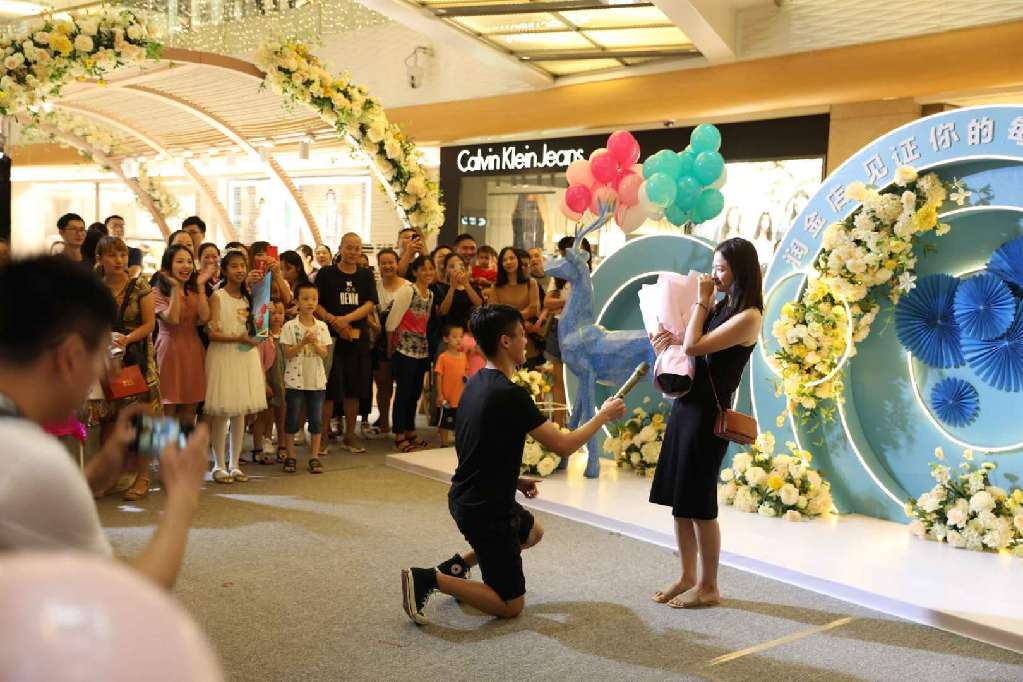開幕式當(dāng)天,潤金店工作人員還配合市民楊先生上演了一場浪漫的“求婚大作戰(zhàn)”。原來,數(shù)日前,楊先生到潤金店表示要買一枚與眾不同的戒指向女友求婚。在銷售顧問的建議下,楊先生選購了一枚藍(lán)寶石戒指作為求婚信物。得知楊先生的心意后,潤金店品牌策劃部決定與楊先一起在七夕當(dāng)天完成這場浪漫的“求婚大作戰(zhàn)”。當(dāng)天,楊先生帶著毫不知情的女友來到潤金店“炫出色彩 耀你不凡”VIP品鑒會現(xiàn)場。正當(dāng)女友全神貫注欣賞小提琴、拉丁舞等開幕式表演節(jié)目時,楊先生從兜里掏出事先準(zhǔn)備好的藍(lán)寶石戒指,單膝跪地向一臉茫然的女友喊:“嫁給我吧?!贝藭r,開幕式現(xiàn)場背景音樂“配合”地?fù)Q成了甜蜜的《今天你要嫁給我》。感動得熱淚盈眶的女友在圍觀市民的歡呼中,拉起了楊先生,并答應(yīng)了他的求婚。圍觀市民表示“七夕不過是路過,卻不料狠狠地吃了一把狗糧?!?/p>