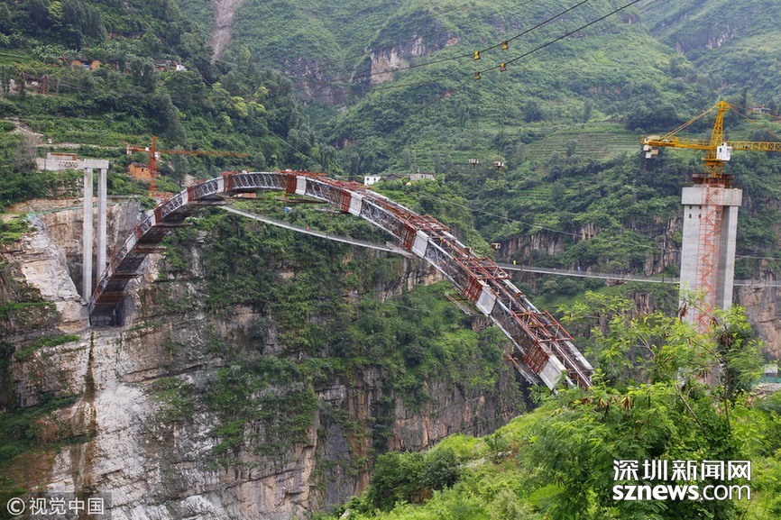 ???? 2018年5月30日,云南昭通,鸚哥大橋完成最后一段35米引橋現(xiàn)澆箱梁作業(yè),標(biāo)志著“鸚哥溜索改橋”主體工程完工,進(jìn)入最后階段的橋面鋪裝和防護(hù)欄施工,預(yù)計(jì)6月底建成通車(chē)。