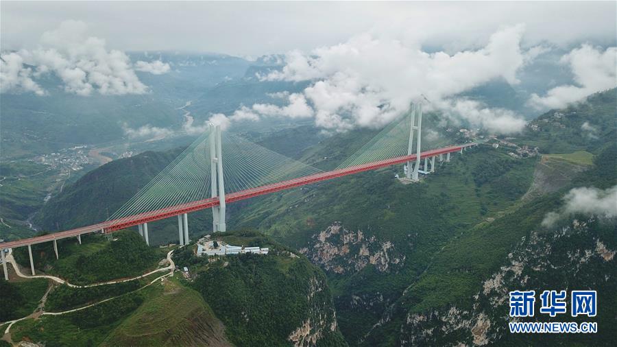 8月9日無(wú)人機(jī)航拍的北盤江大橋。 新華社記者歐東衢攝