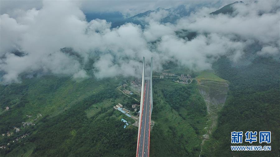 8月9日無人機航拍的北盤江大橋。 新華社記者歐東衢攝