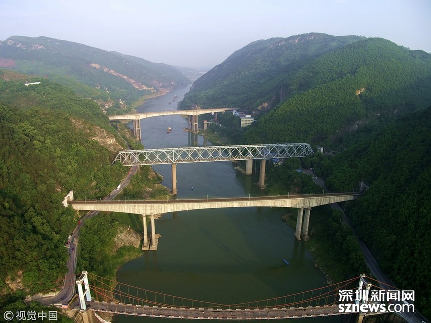 ???? 2018年5月18日,重慶,在嘉陵江重慶觀音峽段,間隔不到1000米的江面上橫跨著五座大橋,形成了五橋“疊翠”的美麗景觀,生動展示了“橋都”重慶的變化。