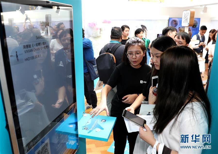 9月5日,工作人員在無人零售商店演示付款結(jié)賬方法。當(dāng)日,香港首家AlipayHK(支付寶香港版)無人零售商店在九龍區(qū)奧海城開業(yè)。商店占地約370平方米,售賣多款時尚精品、服飾等,還引入一臺智能機械臂,為顧客現(xiàn)場沖調(diào)香濃咖啡。新華社記者李鋼攝