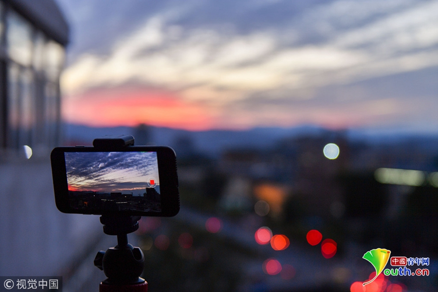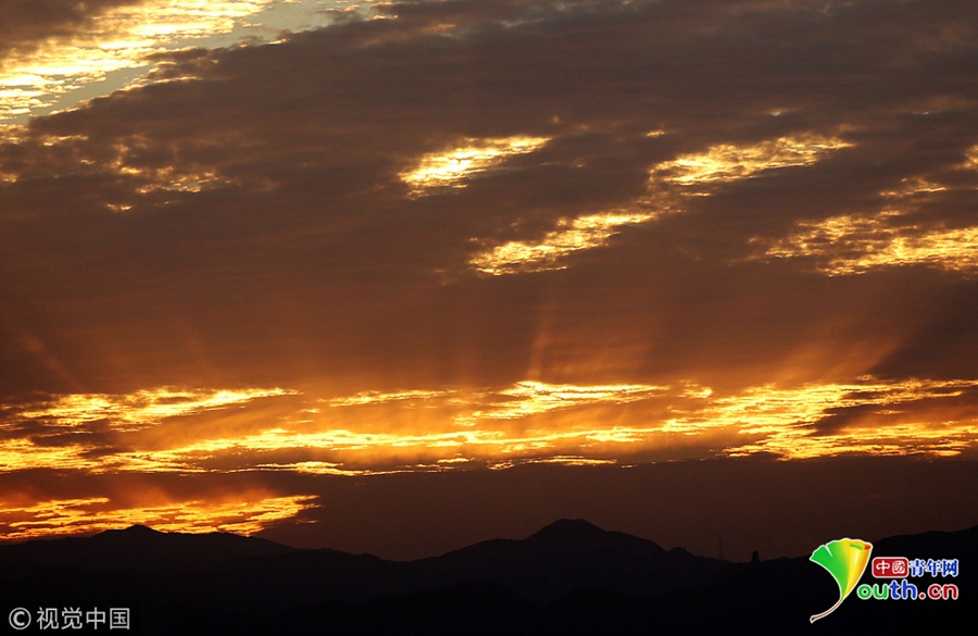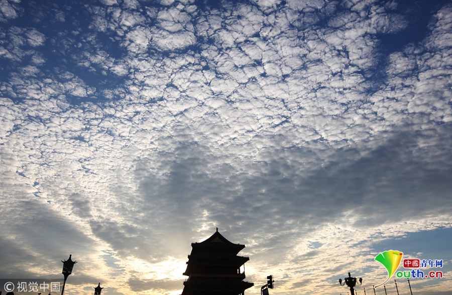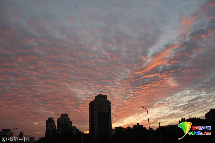 北京高積云點綴天空,和夕陽一起勾勒出一張絕美“天空圖”。