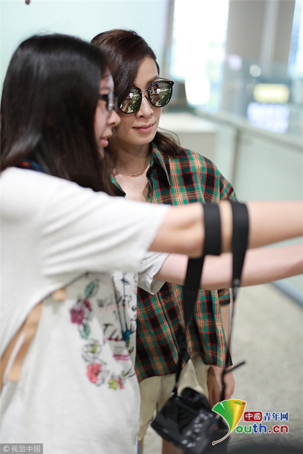 2018年9月9日,“嫻妃”佘詩曼從上海機(jī)場飛往北京機(jī)場,她擺“剪刀腿”大方任拍,身穿格紋襯搭配衫燈籠褲,時髦青春衣品超贊!