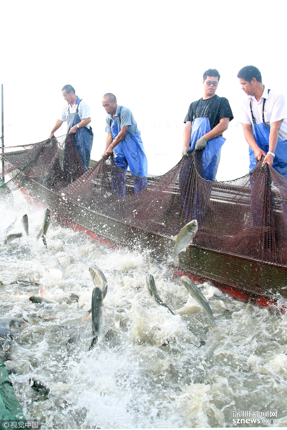 2018年6月26日,江蘇省常州市嘉澤鎮(zhèn)捕撈村的漁民組織夏季捕撈,一網(wǎng)魚達(dá)五萬(wàn)余斤,以鰱魚為主,供應(yīng)市場(chǎng)需求。夏捕的魚價(jià)較平時(shí)有所上漲,漁民粗略估計(jì)可增收上萬(wàn)余元。