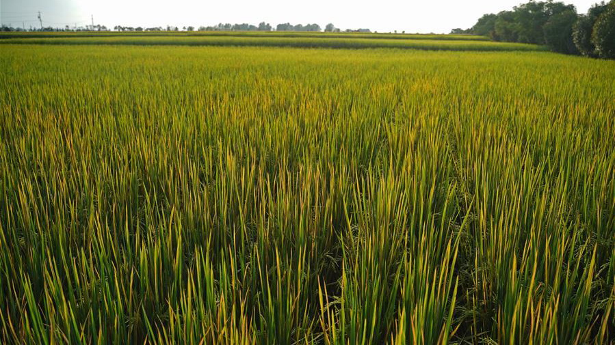 這是一張拼版照片。左圖:蔡雪手捧著剛收割的水稻(9月19日攝);右圖:張楠楠行走在稻田間(9月18日攝)。
