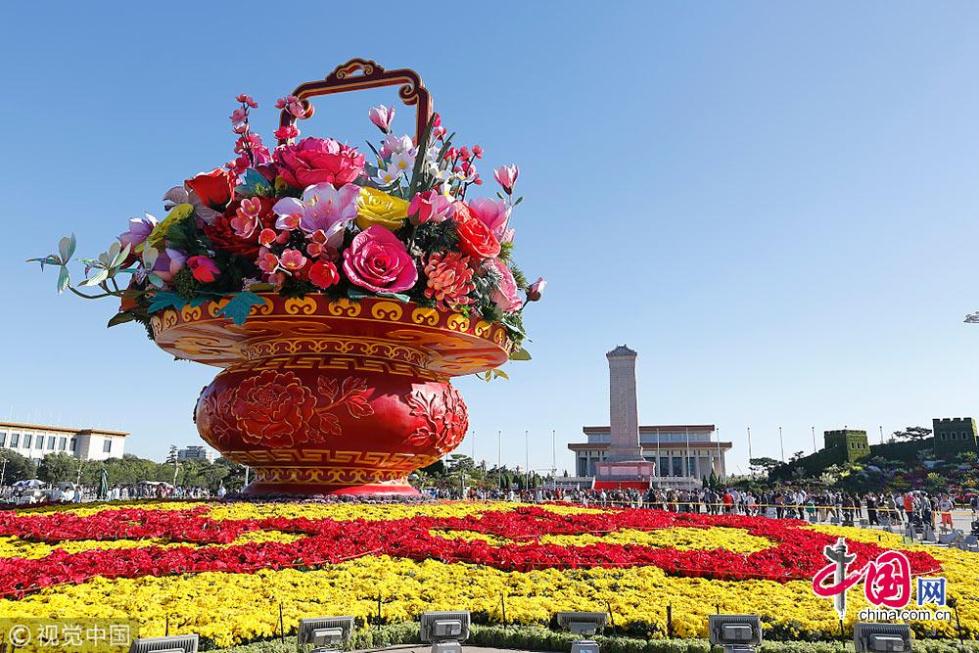 2015年的大花籃規(guī)格與往年相似,花籃依然采用正紅色,同時(shí)用金色祥云描邊,提梁為紅色鑲嵌金邊的長方形,頂端再裝飾一朵凸起的祥云。花籃里已經(jīng)有20支左右的花朵,有大紅色的牡丹、玫紅色的月季,再調(diào)和以亮黃色的向日葵,粉色的玉蘭從花籃東側(cè)旁逸斜出,兩束紅梅分別繞著花籃的一側(cè)提梁向上伸展,中間點(diǎn)綴著些粉色桃花?;ɑ@下方放著白花黃蕊的水仙和一些綠色植物,整體配色典雅大氣,富有節(jié)日氣氛。