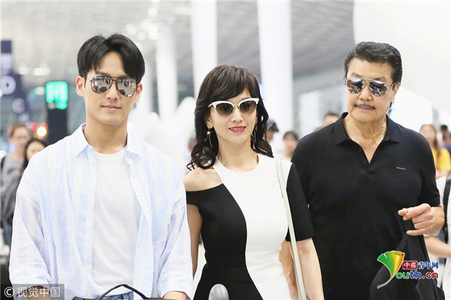 2018年9月25日晚,深圳,剛參加完央視秋晚的趙雅芝攜老公黃錦燊及兒子黃愷杰抵達深圳寶安機場,超高顏值的一家人所致之處頻頻引起側目,其子黃愷杰自推行李車,俊朗的外形引起粉絲一路跟拍,相當拉風!