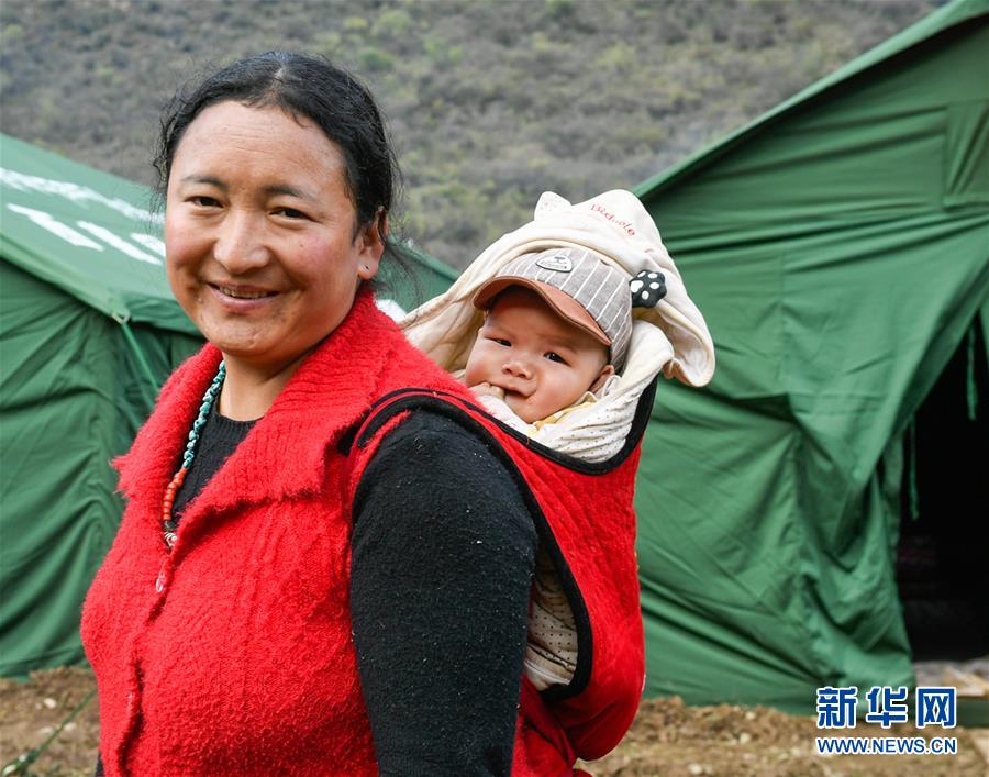 這是在距波羅鄉(xiāng)政府約6公里的一處臨時(shí)安置點(diǎn)內(nèi)拍攝的群眾(10月14日攝)。 新華社記者 劉東君 攝