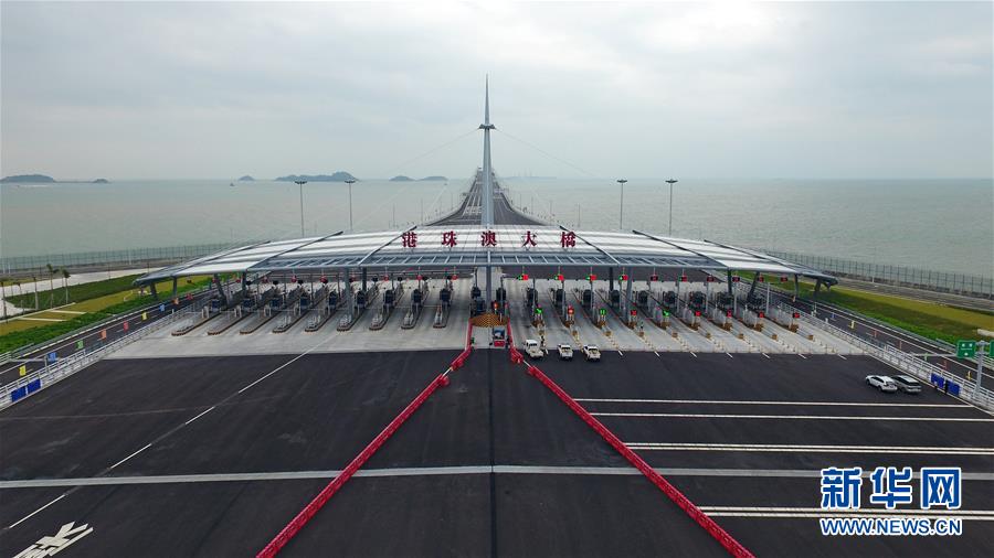 這是港珠澳大橋收費廣場(10月20日無人機拍攝)。