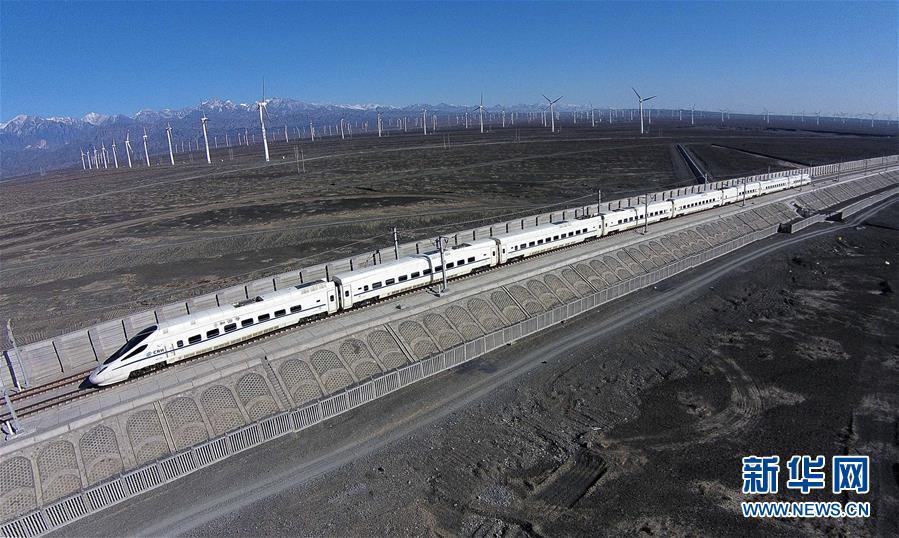 一輛和諧號動車穿行在新疆烏魯木齊達(dá)坂城風(fēng)力發(fā)電場的“風(fēng)車森林”里(2014年11月16日無人機(jī)拍攝)。今年以來,新疆穩(wěn)步推進(jìn)新能源參與“疆電外送”、擴(kuò)大與燃煤自備電廠調(diào)峰替代交易等多種電力交易方式,著力破解“綠色電力”上網(wǎng)難題,新能源發(fā)電量同比增加近13個百分點,而棄電量和棄電比實現(xiàn)“雙降”,綠色發(fā)展理念進(jìn)一步落實。 新疆是我國重要的能源供應(yīng)和儲備基地,風(fēng)能、太陽能儲量豐富。近年來,新疆新能源裝機(jī)總量突破2700萬千瓦,規(guī)模和占比均居全國前列。新華社記者 江文耀 攝