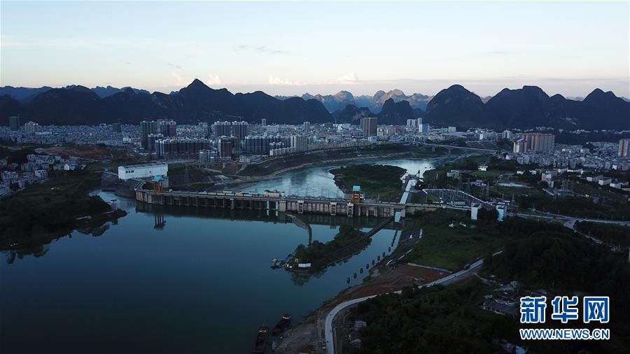這是位于廣西大化縣境內(nèi)的大化水電站(9月19日無人機(jī)拍攝)。廣西紅水河是我國十二大水電基地之一,目前建有天生橋一級、天生橋二級、平班、龍灘、巖灘、大化、百龍灘、樂灘、橋鞏、大藤峽10個大型梯級電站及下游西江上的長洲水利樞紐。這些水電站既是我國“西電東送”的主力軍之一,又對珠三角地區(qū)遠(yuǎn)離洪災(zāi)侵襲有著重要的調(diào)節(jié)功能。近期,新華社記者用無人機(jī)從空中俯瞰這些水電基地群,呈現(xiàn)它們的別樣之美。新華社記者 張愛林 攝