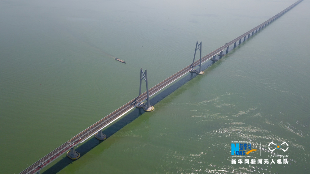 圖為新華網(wǎng)無(wú)人機(jī)隊(duì)航拍港珠澳大橋。新華網(wǎng) 黃璐璐 攝