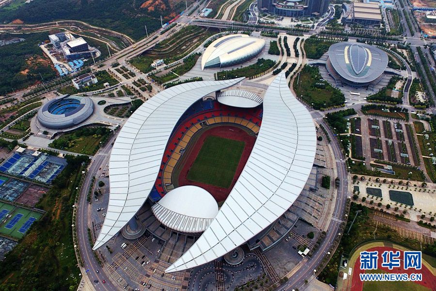 圖為無人機航拍的體育中心比賽場館(攝于2018年10月22日)。新華網(wǎng) 章佳禮攝