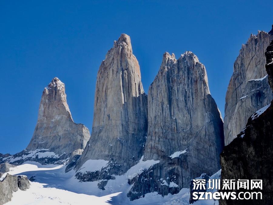 百內國家公園內的三塔峰是智利乃至南美洲久負盛名的徒步旅游景點。三座塔峰兀然聳立,海拔高度都在2200米以上,方圓幾十公里之外都能看到它們的倩影。這個景點對全球戶外旅游愛好者有著非凡的魅力。徒步愛好者歷經10小時征服三塔峰,拍下沿途美景。李仁奇 攝