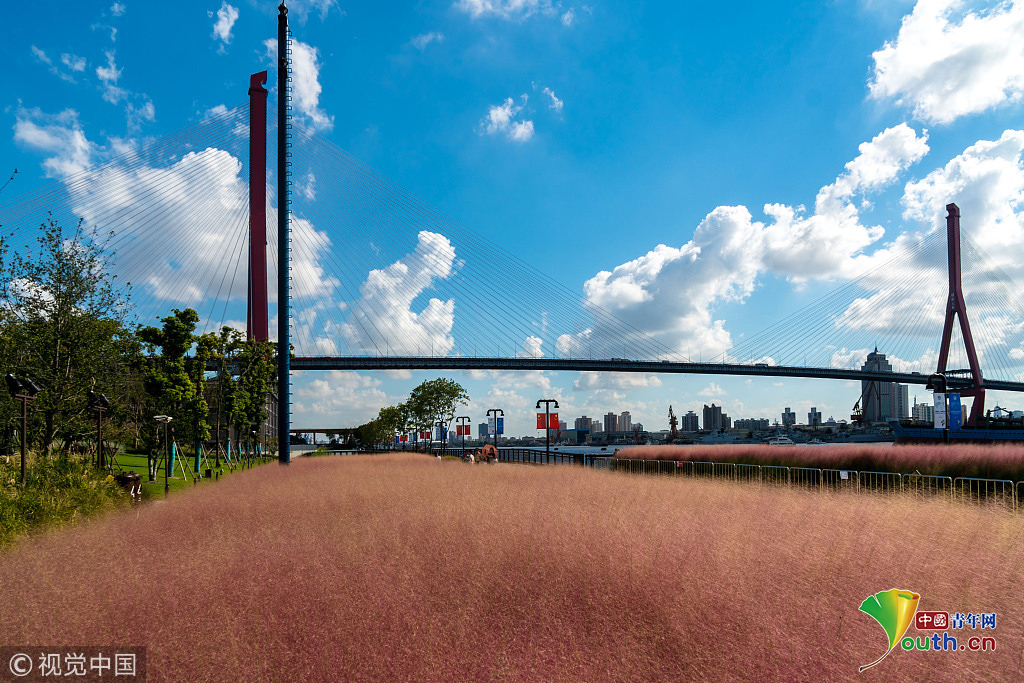 上海楊浦濱江粉黛亂子草成片盛開(kāi) 美不勝收