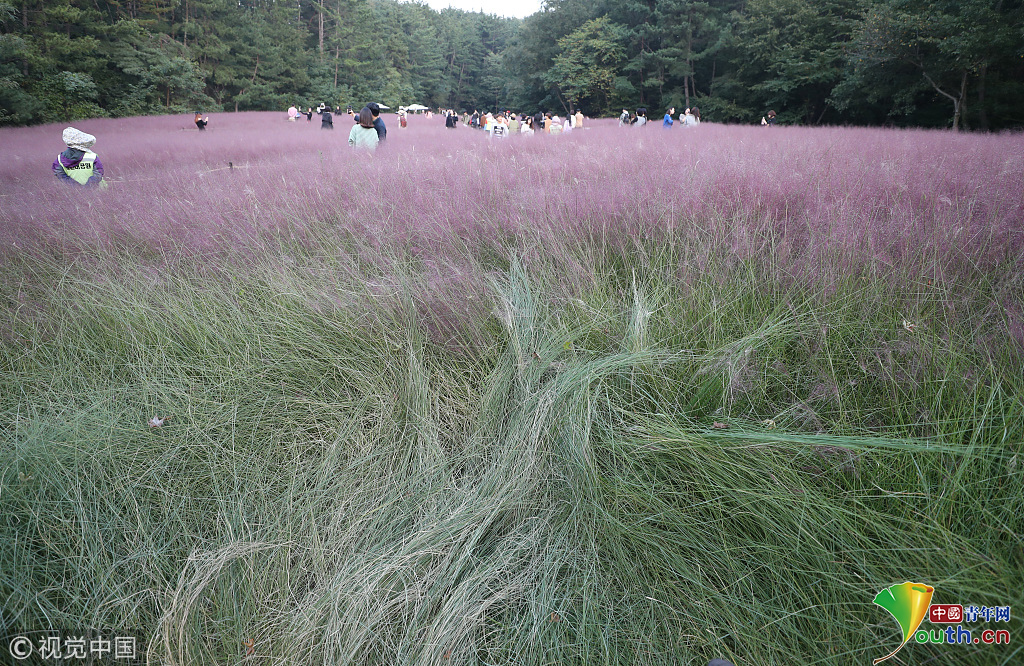 當(dāng)?shù)貢r(shí)間2018年10月16日,韓國(guó)蔚山,近日,蔚山公園大片粉黛亂子草盛開(kāi),粉紅花海浪漫十足,但部分花海遭游客隨意踩踏。圖片作者:Yonhap News Agency