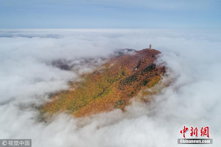 10月6日晨曦到中午,黑龍江雞西,中俄界湖興凱湖北岸蜂蜜山國家地質(zhì)公園,再現(xiàn)云海為長假收關(guān)。 圖片來源:視覺中國