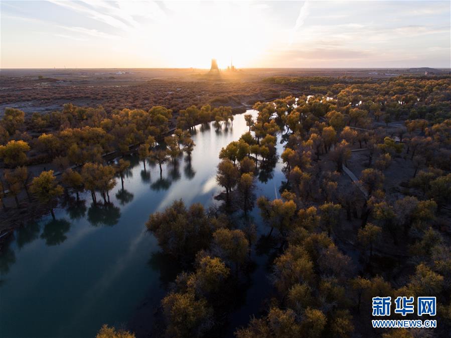 這是在內蒙古自治區(qū)額濟納旗拍攝的胡楊林(10月10日無人機拍攝)。 金秋時節(jié),內蒙古自治區(qū)額濟納旗胡楊林如同披上金裝,成為大漠中的一抹亮色,吸引眾多中外游客前來觀賞游玩。 新華社記者劉磊攝