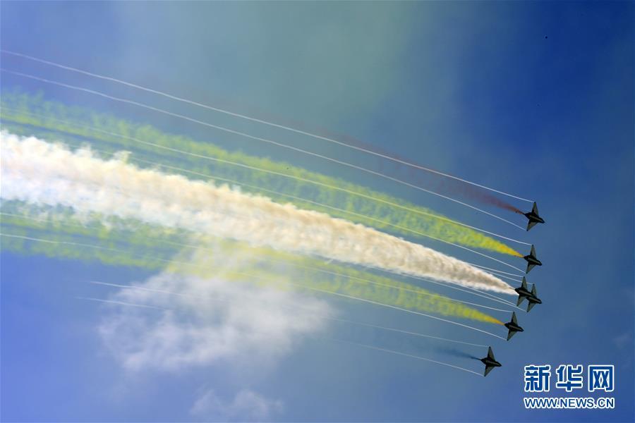 11月6日,中國(guó)空軍八一飛行表演隊(duì)在航展現(xiàn)場(chǎng)進(jìn)行飛行表演。當(dāng)日,第十二屆中國(guó)國(guó)際航空航天博覽會(huì)在珠海開(kāi)幕。 新華社記者梁旭攝