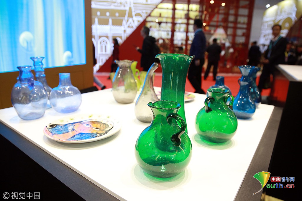 2018年11月6日,上海,首屆中國國際進口博覽會國家展上,共有82個國家、3個國際組織設(shè)立了71個展臺。埃及館。視覺中國
