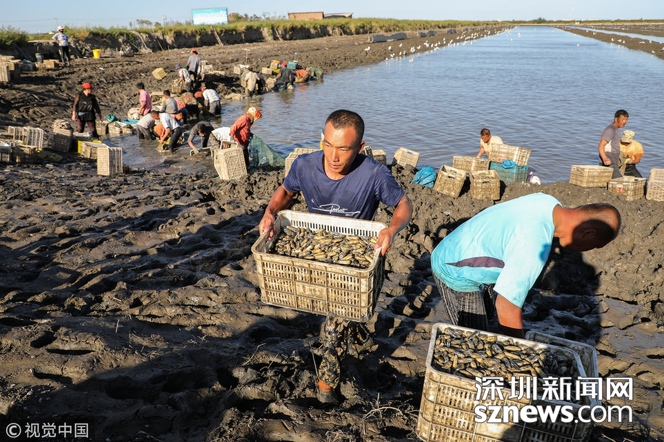 緊挨著黃海的大片養(yǎng)殖區(qū),因?yàn)橐粭l濱海大道,被自然劃成南北兩個(gè)部分。挖蟶人從四面八方趕來,或集體包車、或自駕摩托。這些機(jī)動車密密地停靠在濱海大道一側(cè),綿延數(shù)公里。