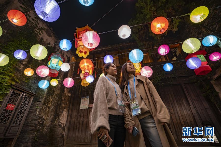 11月6日,兩個女孩在浙江省桐鄉(xiāng)市烏鎮(zhèn)留影。 新華社記者才揚(yáng)攝