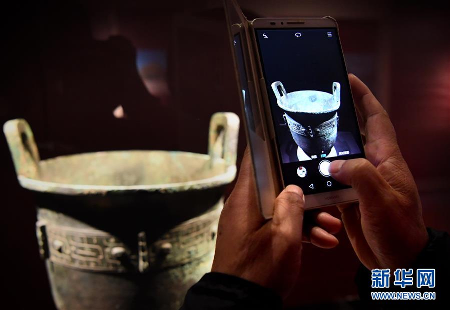 10月12日,參觀者在安陽(yáng)博物館拍攝展品。目前,“鳳歸大邑商——殷墟婦好文物安陽(yáng)故里展”正在安陽(yáng)博物館展出,共展出文物474件。1976年被考古學(xué)家發(fā)現(xiàn)的婦好墓,是世界文化遺產(chǎn)、中國(guó)商代后期都城遺址——殷墟唯一保存完整的商代王室墓葬。新華社記者李安攝